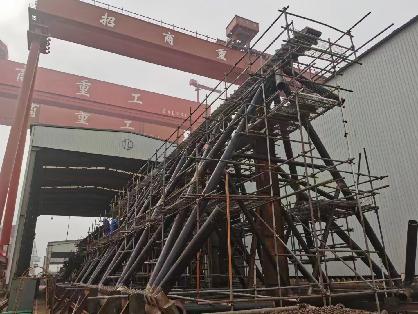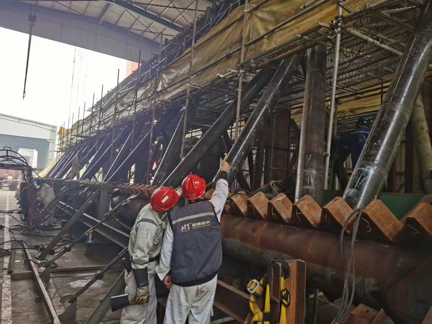 2023年4月30日,隨著招商重工273項目最后一節(jié)樁腿的成功摘鉤,標志著豪通船務(wù)承接的招商重工“1200噸風(fēng)電安裝船”樁腿工程完美收關(guān)。自22年8月1日開始,豪通船務(wù)調(diào)集最優(yōu)秀的班組從齒條加工,單樁腿制作,樁腿合攏及最后的插樁對接,每一個環(huán)節(jié)都嚴絲合縫,無縫對接,所有作業(yè)人員爭分奪秒,夜以繼日,力爭在最短時間內(nèi)保質(zhì)保量完成項目并交付。